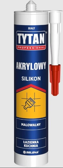 Silikon akrylowy Tytan - uniwersalny uszczelniacz do wypełniania szczelin i spoin w pracach wykończeniowych oraz remontowych. Produkt zapewnia estetyczne wykończenie i dobrą przyczepność do typowych podłoży budowlanych, dzięki czemu sprawdza się w większości standardowych zastosowań.